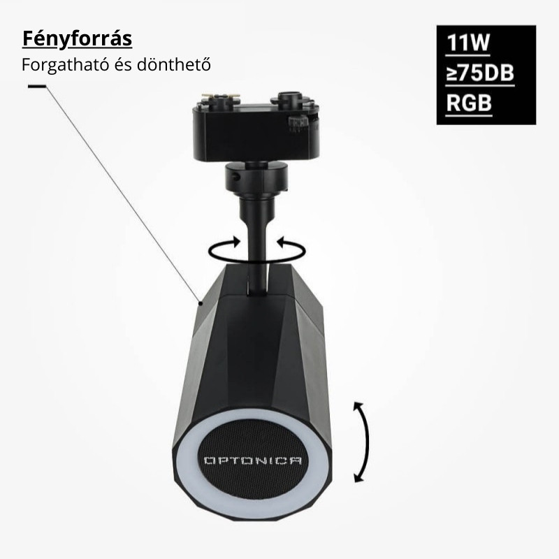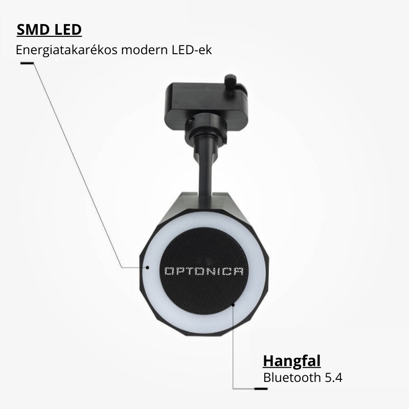 Optonica 1-fázisú sínlámpa beépített Bluetooth hangszóróval és RGB világítással