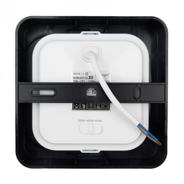 2in1 Univerzális LED Lámpa (12W) 1100lm – Beépíthető ÉS Falon Kívüli, Állítható Színhő (CCT), Fekete, Négyzet