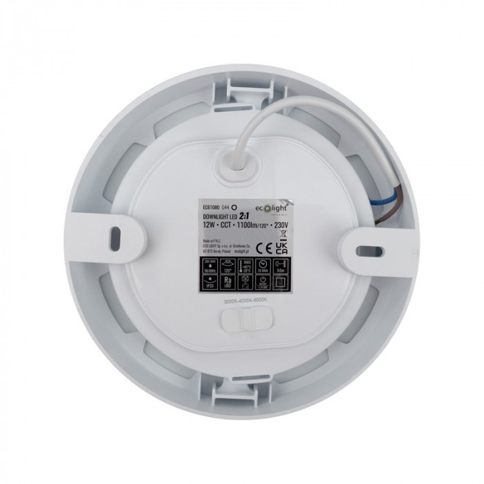 2in1 Univerzális LED Lámpa (12W) 1100lm – Beépíthető ÉS Falon Kívüli, Állítható Színhő (CCT), Fehér, Kerek