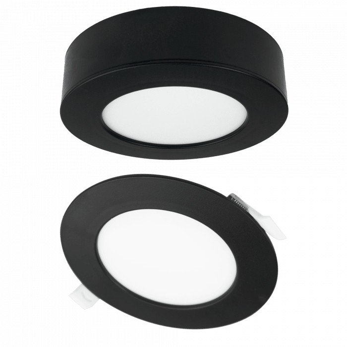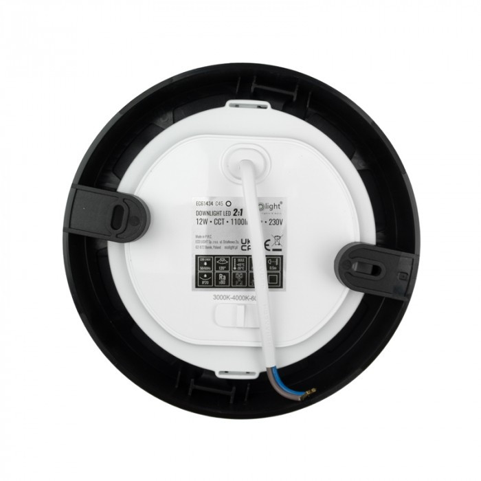 2in1 Univerzális LED Lámpa (12W) 1100lm – Beépíthető ÉS Falon Kívüli, Állítható Színhő (CCT), Fekete, Kerek