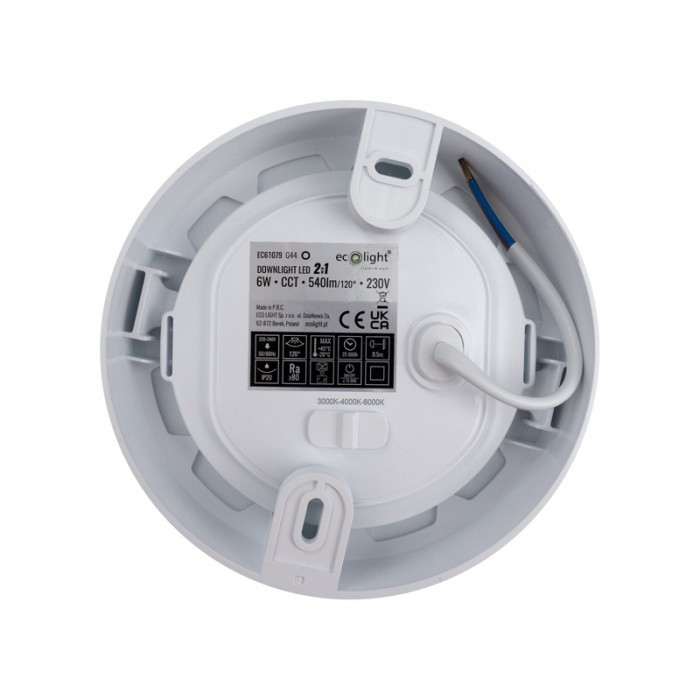 2in1 Univerzális LED Lámpa (6W) 540lm – Beépíthető ÉS Falon Kívüli, Állítható Színhő (CCT), Fehér, Kerek