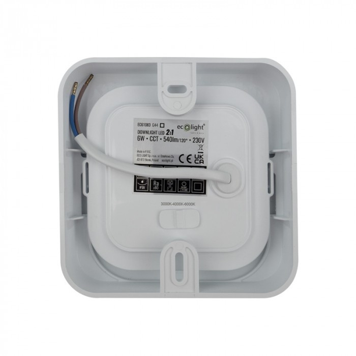 2in1 Univerzális LED Lámpa (6W) 540lm – Beépíthető ÉS Falon Kívüli, Állítható Színhő (CCT), Fehér, Négyzet