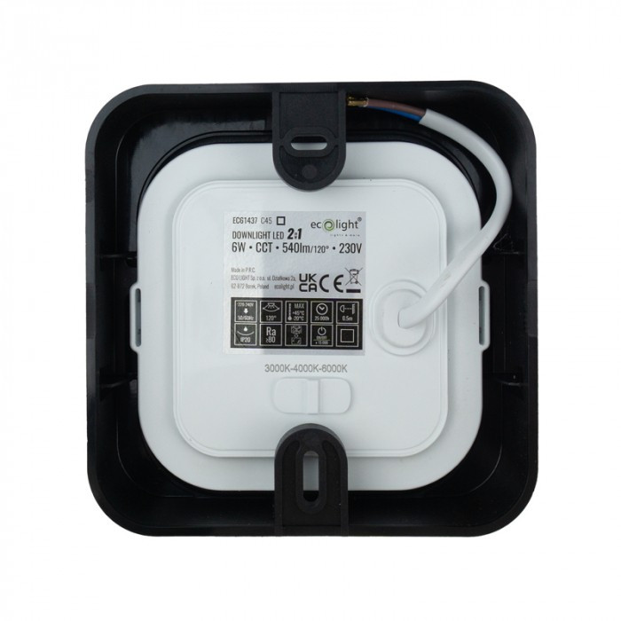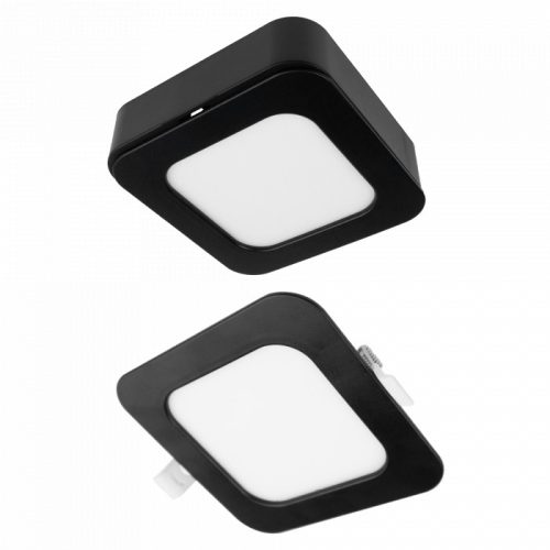 2in1 Univerzális LED Lámpa (6W) 540lm – Beépíthető ÉS Falon Kívüli, Állítható Színhő (CCT), Fekete, Négyzet