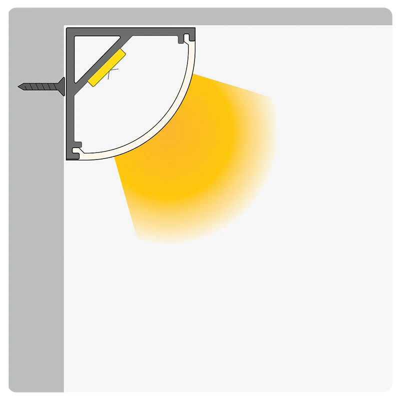 Emeld profi szintre a LED szalag világításodat! Ez az eloxált alumínium sarokprofil tökéletes megoldás konyhapultok, polcok és mennyezeti sarkok elegáns megvilágítására. Az íves opál bura megfelelő LED szalag kiválasztásánál egyenletes, homogén és pontmentes fényt biztosít, miközben hűti és védi a bele helyezett LED szalagot. A LED alu profil belső szélessége 10 mm.