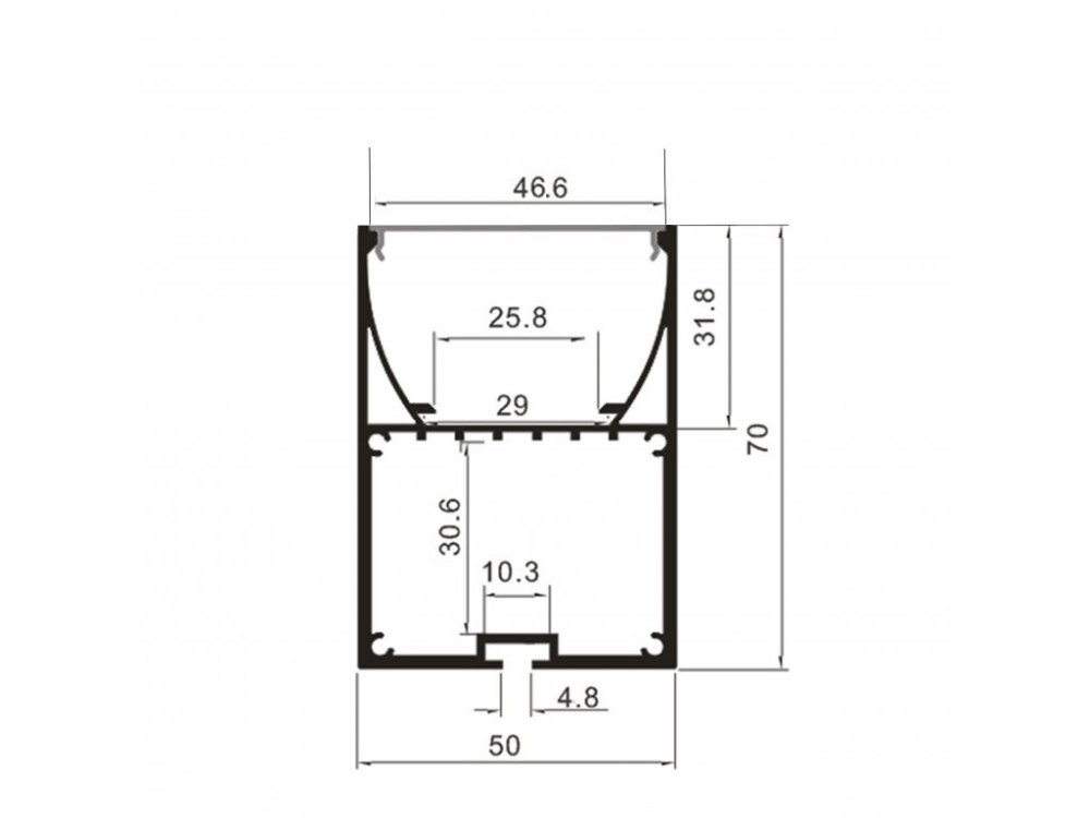 A profil biztosítja egyben a LED szalagok hűtését is. A mély kialakítású alu profil teljesen homogén fényt biztosít, így használhatjuk dekorációs célra, vagy fővilágításnak egyaránt.