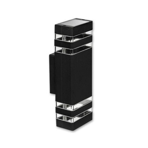 Modern kialakítású kültéri oldalfali lámpa, IP54-es védettségű, 2 irányú megvilágítást biztosít. A lámpatest anyaga alumínium, a lámpabúra pedig edzett üveg. A fényforrás nem tartozék, GU10-es izzót ITT tudsz választani hozzá.