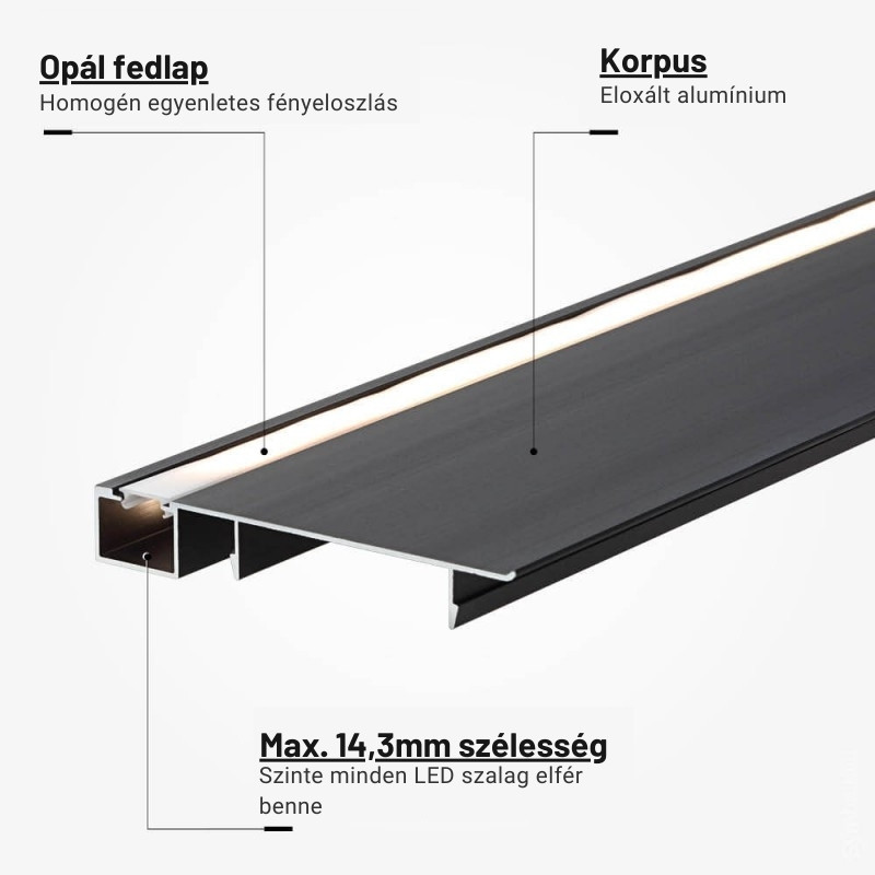 LED szegélyléc profil fekete, opál fedővel, eloxált alumínium 2 méter 77,4x12mm