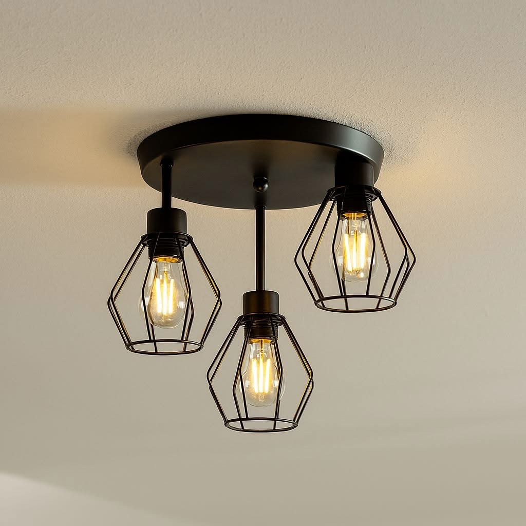 OTTO acél rácsos mennyezeti lámpa 3xE27 fekete