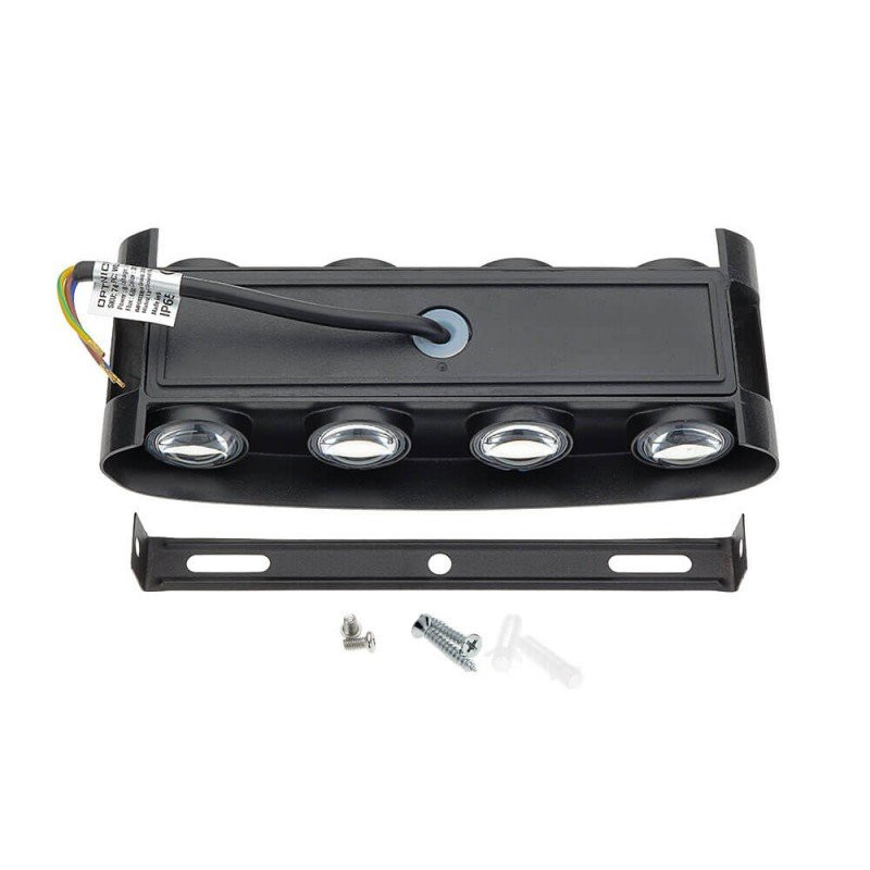 Az Optonica LED kültéri fali lámpa 2x4 lencsés kialakítással dekoratív oldalfali fényforrás. A fali lámpa alján és tetején található 4-4 db lencsés világítás, így a fali lámpa le- és felfelés egyaránt világít.