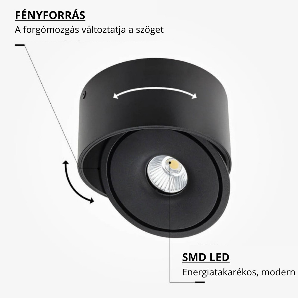 Prémium Falon Kívüli Billenthető LED Spotlámpa, 20W, 2000lm, 24°, CCT, Fekete – Élethű Színek (CRI90) és Irányítható Fény