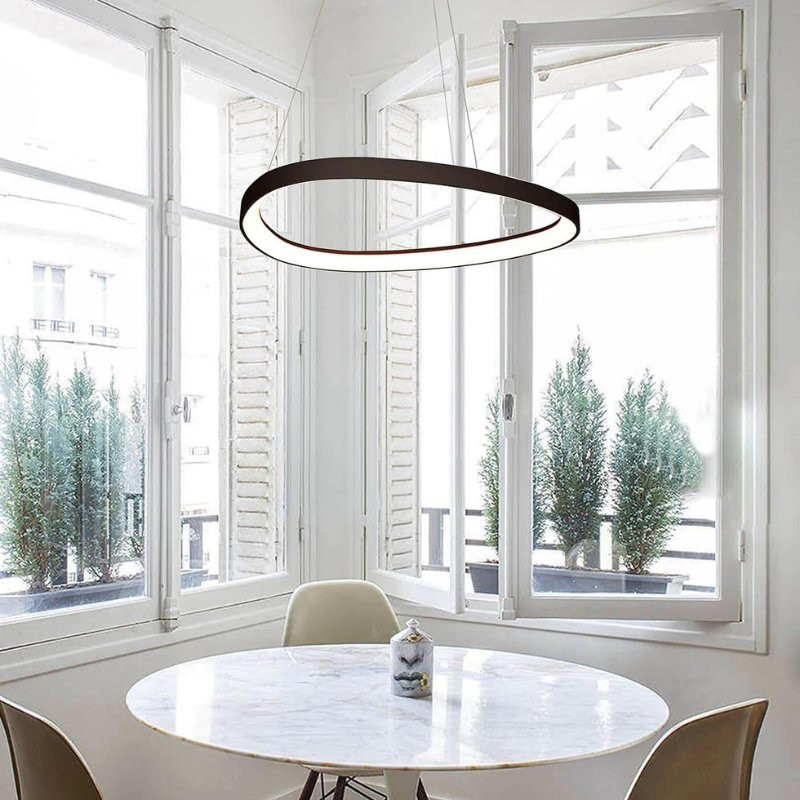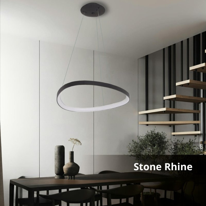 A Stone Rhine LED csillár 36W teljesítménnyel és 2880 lumen fényárammal rendelkezik. A függesztett LED lámpa színhőmérséklete és fényereje igényeink szerint állíthtó a csomagban található távirányító segítségével. A függeszték hossza 120 cm.