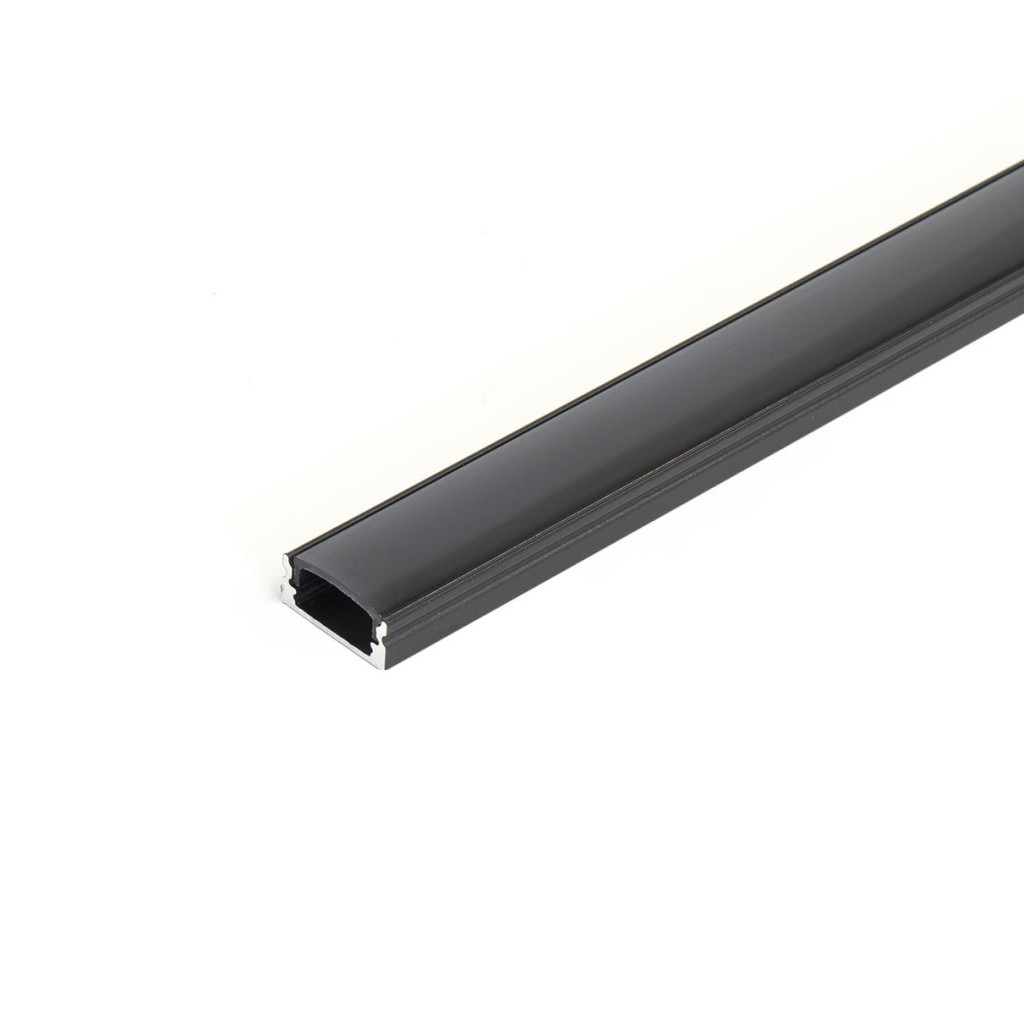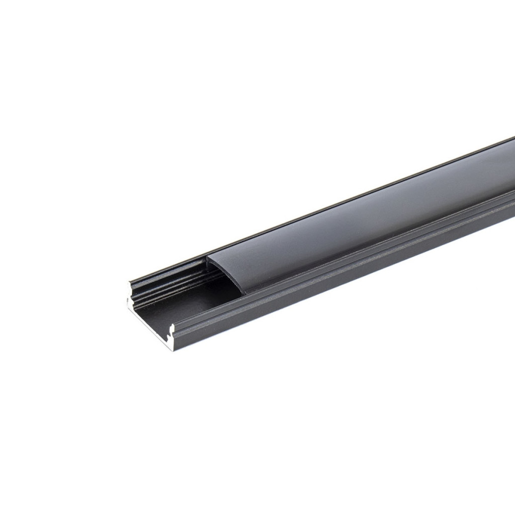 U alakú LED profil fekete színű, fekete opál fedővel, eloxált, 2 méter