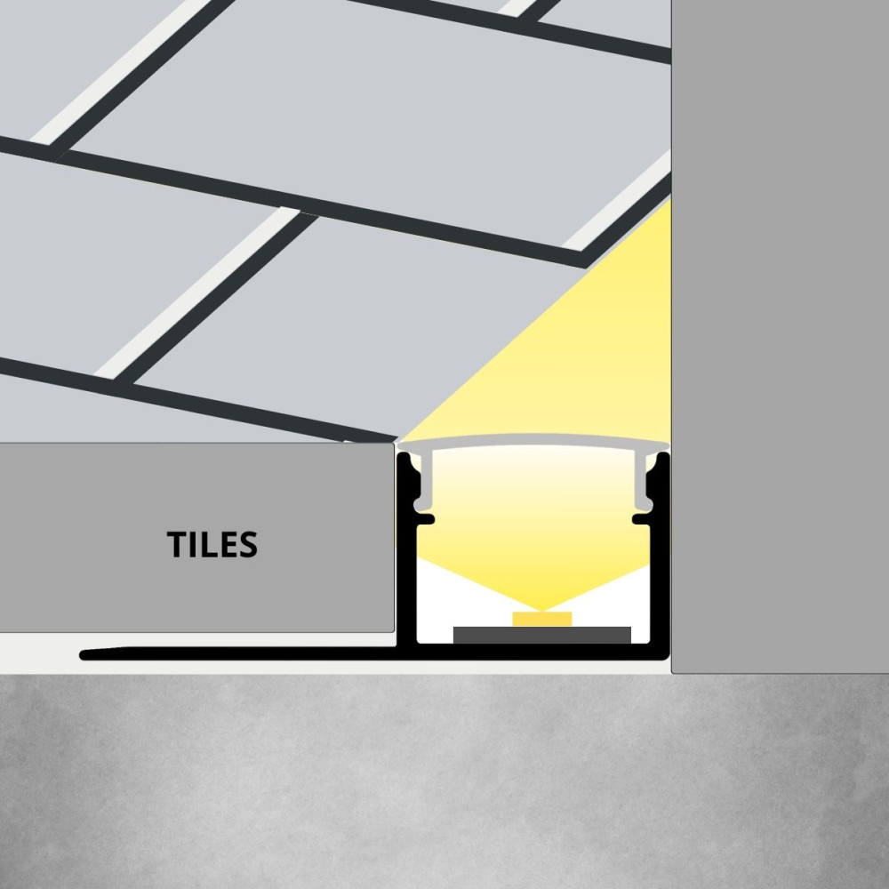 Ez a speciális alumínium LED profil tökéletesen integrálható csempe- és járólapfelületekbe, diszkréten világítva meg a teret. Védi a LED szalagot és egyenletes, szórt fényt biztosít az opál fedővel. Ideális modern, vízálló világítási megoldásokhoz.