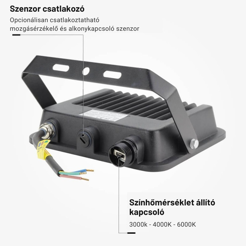 CCT LED Reflektor 50W, 4500lm, IP65 – Bővíthető Mozgásérzékelővel