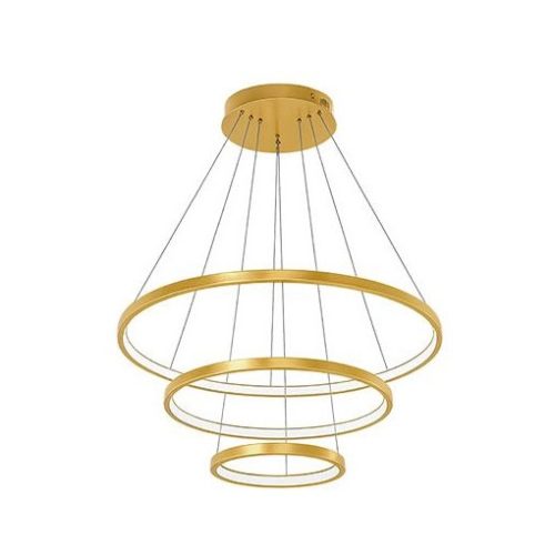 • Luxus Arany "Coma" Dizájn: A lámpa három elegáns gyűrűből áll, amelyek 20, 40 és 60 cm átmérővel rendelkeznek. Ez a dinamikus elrendezés egyedülálló vizuális élményt nyújt, és a tér fókuszpontjává teszi a csillárt. A fényűző arany szín eleganciát, melegséget és gazdagságot sugároz, tökéletesen illeszkedve a glamour, art deco, modern vagy luxus stílusú enteriőrökbe.