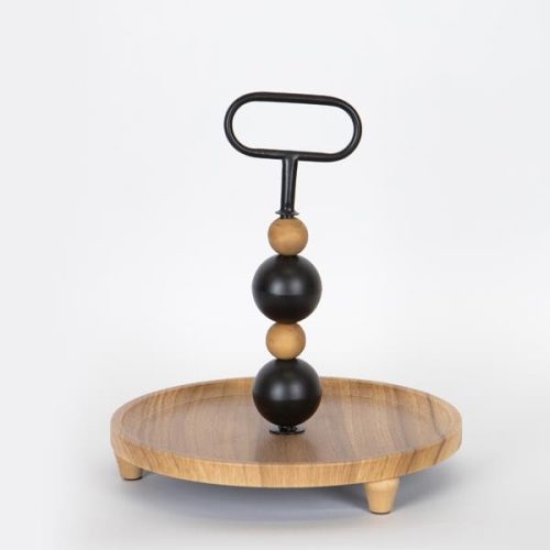 Desszerttorony (30x30x32.5cm) – Fa és Fém, 1 Szintes, Elegáns Fekete Design