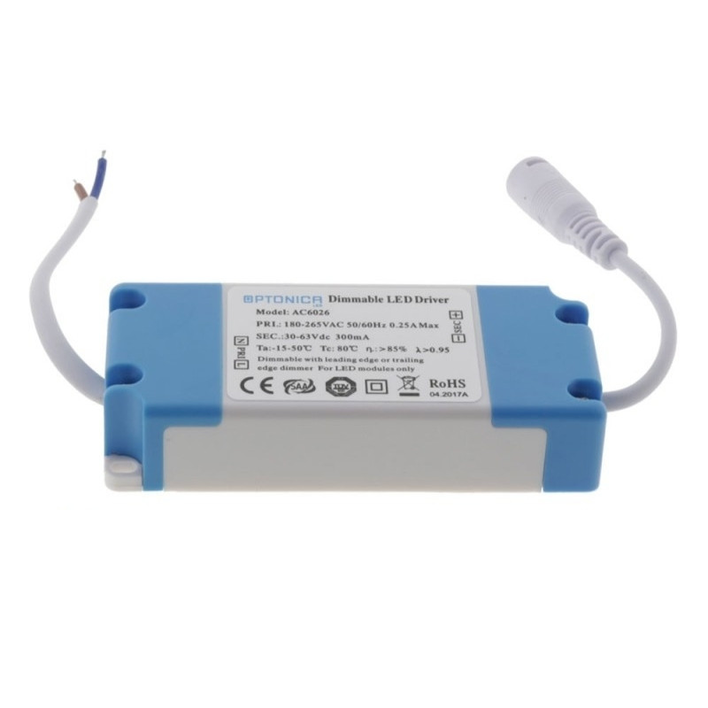 Optonica 220V-os dimmelhető (fényerőszabályozható) LED panel tápegység 300mA kimenettel, 10-18W