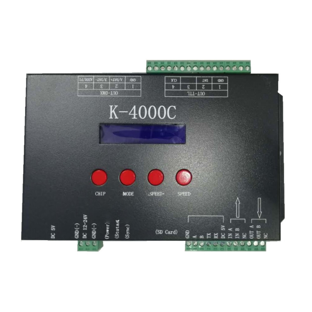 1. DMX és SPI Szabvány Támogatása: A digitális LED világítás lelke. A vezérlő támogatja az ipari standard DMX és SPI (Serial Peripheral Interface) protokollokat, így minden egyes csatlakoztatott lámpa vagy fénypixel színét és mozgását ezredmásodperces pontossággal képes irányítani.