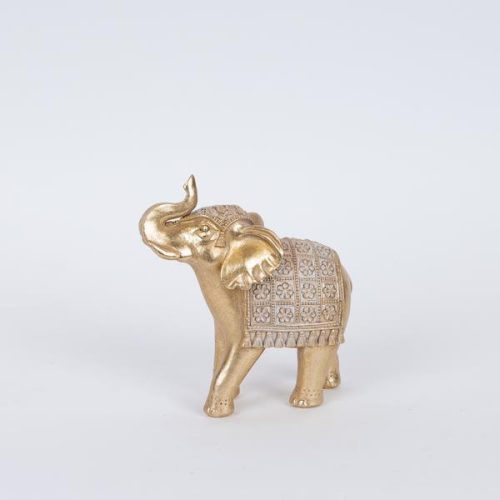 Ez az elefánt figura egy modern és elegáns dísztárgy, mely a tradicionális szimbólumokat ötvözi a kortárs designnal. A 13x6.5x14.3 cm-es méretű, ragyogó arany színű elefánt szobor részletgazdag, mégis letisztult kidolgozású. Tökéletes kiegészítő nappalikba, dolgozószobákba, vagy irodákba, és ideális ajándék szeretteinknek, hogy jókívánságainkat fejezzük ki.