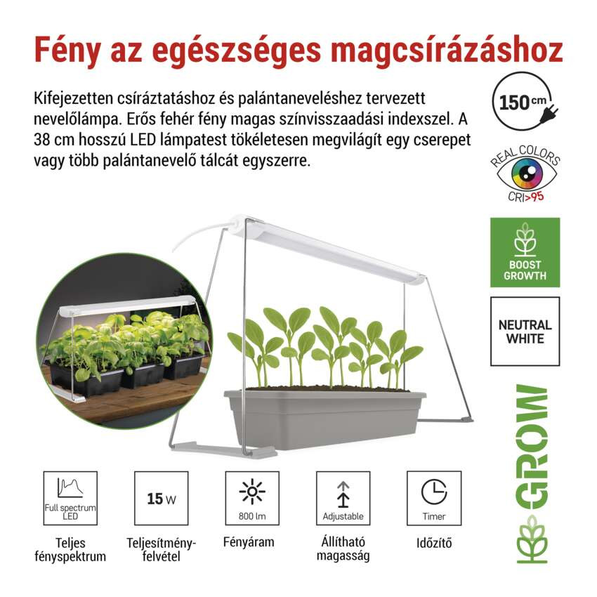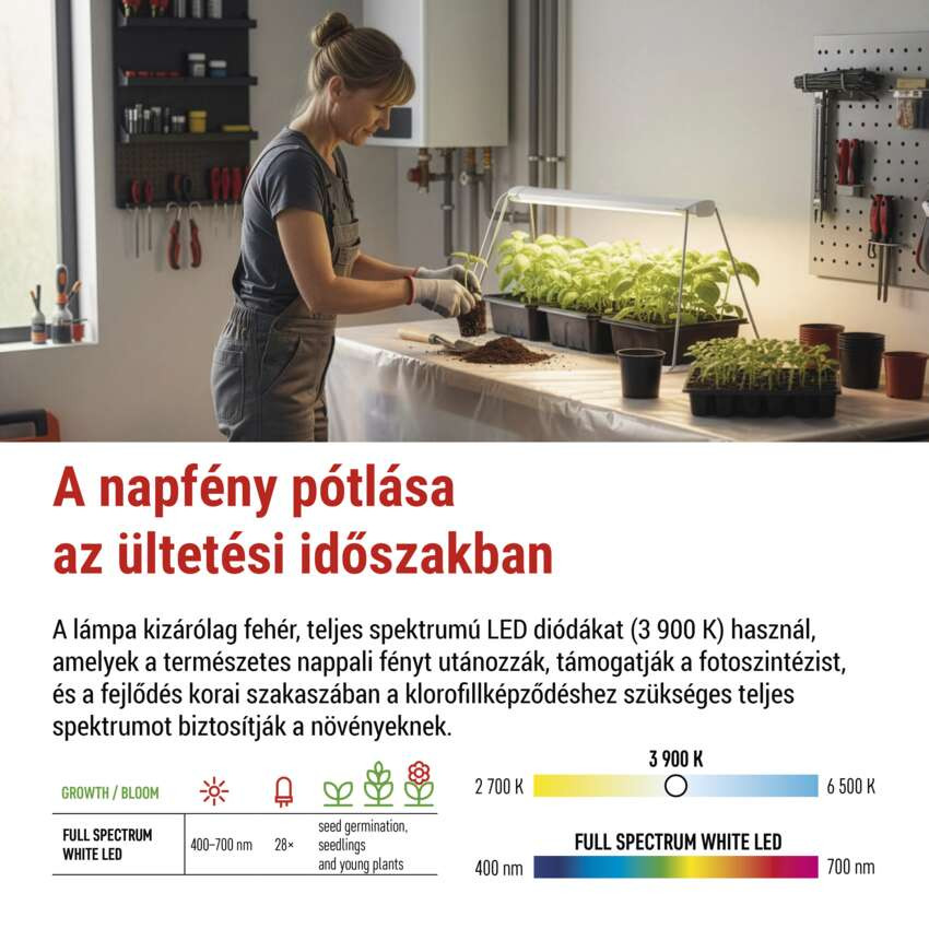 EMOS Állványos LED Növénynevelő Lámpa (Teljes Spektrum) – 28 LED, Időzítővel Palántákhoz