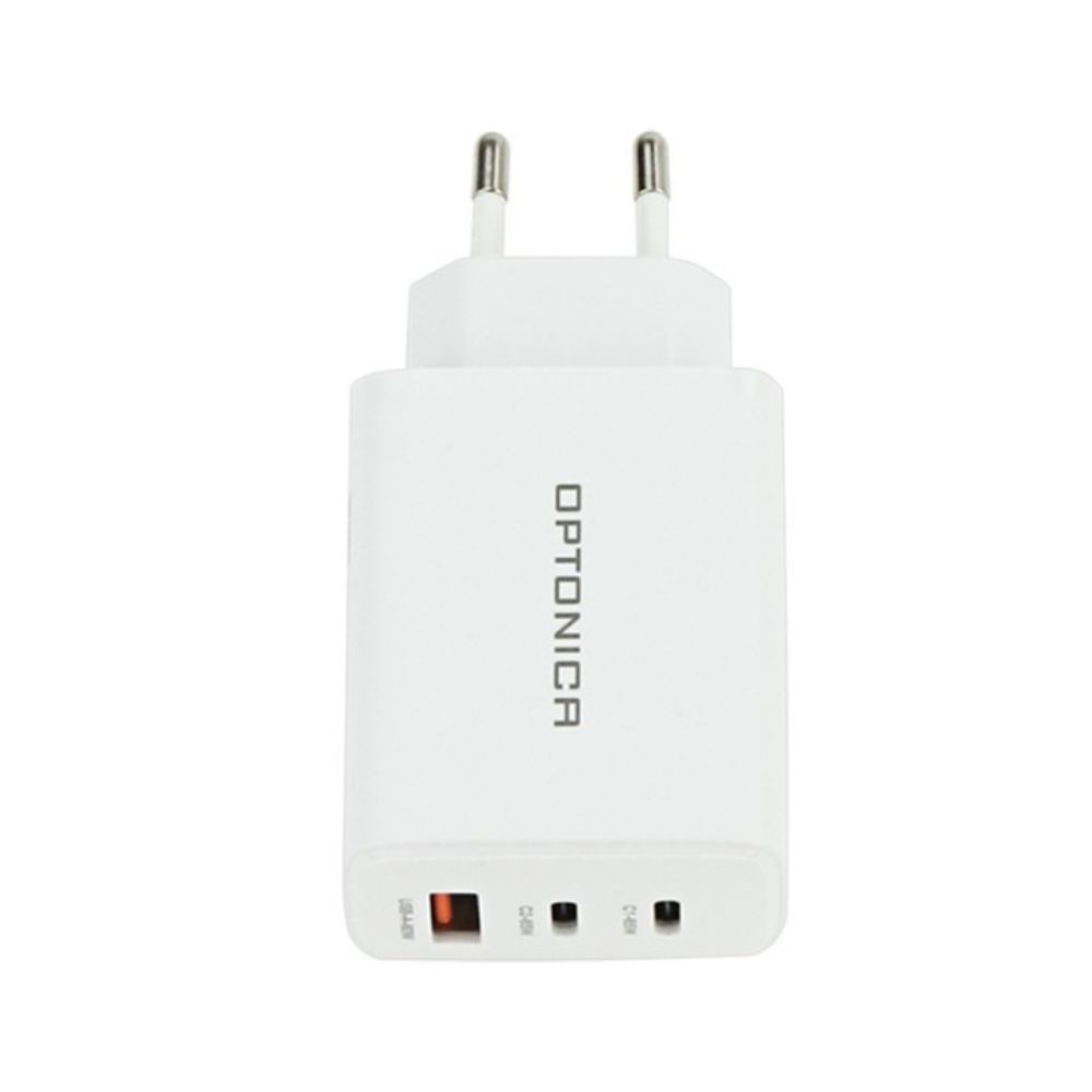 65W-os GaN technológiás gyorstöltő három USB porttal fehér színben