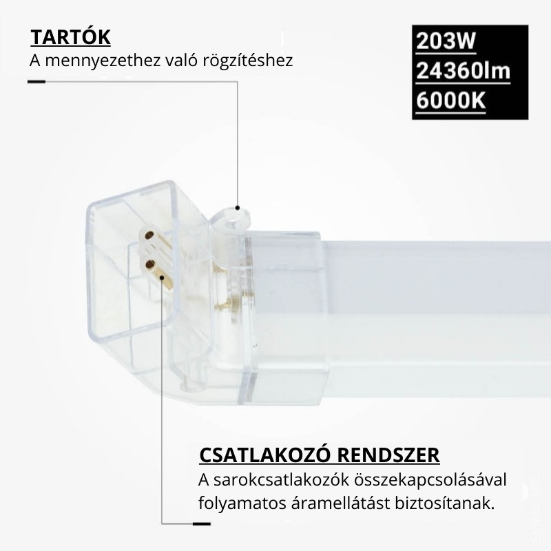 • Tiszta, Inspiráló Fény: A 6000K-s színhőmérsékelet éles, tiszta, napfényhez hasonló fényt ad, ami ideális környezetet teremt a kreatív munkához, ötleteléshez és a modern dizájn kiemeléséhez.