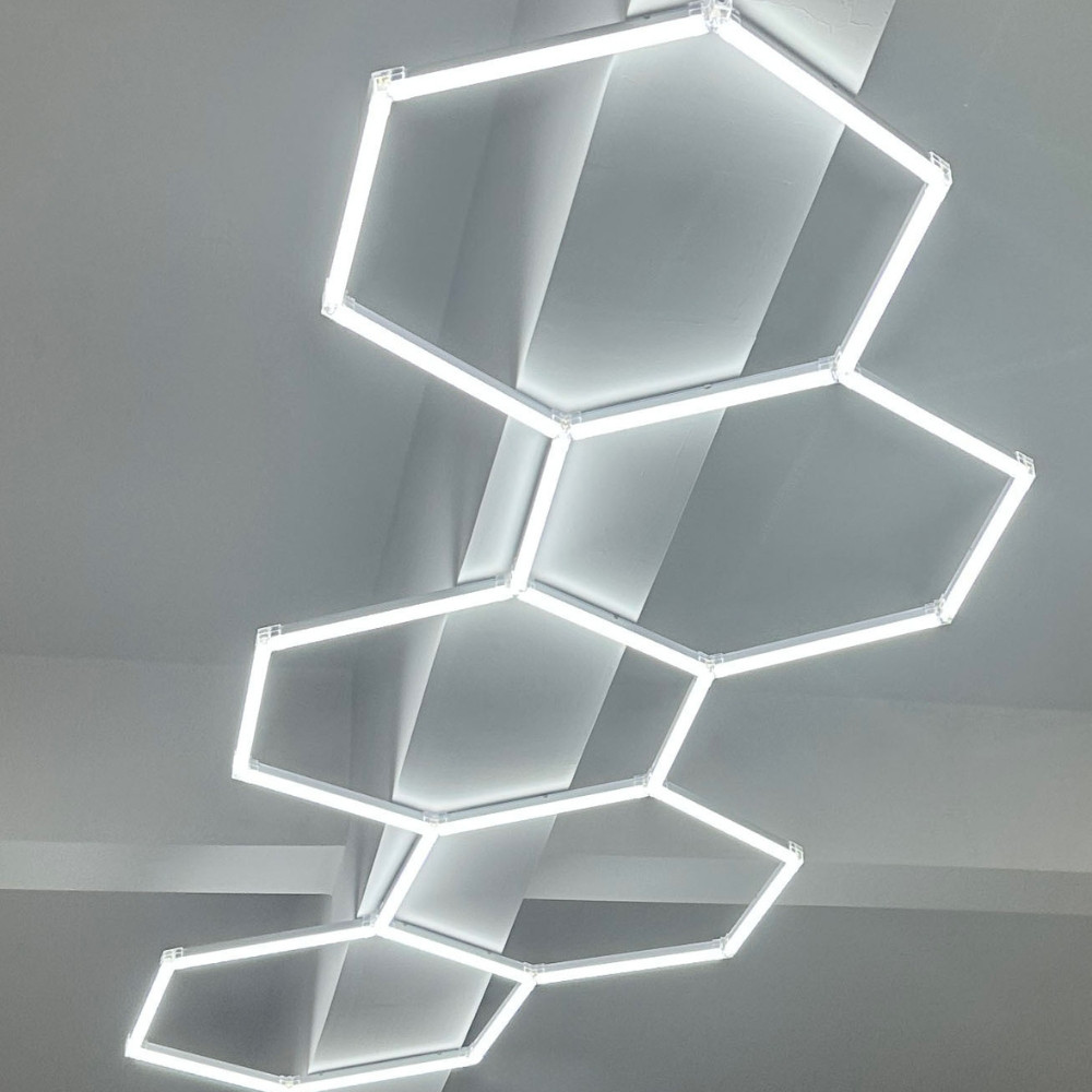 Ez a játékos, aszimmetrikus elrendezésű hexagon lámpa egy valódi fény-szobor a mennyezeteden. A sorozat legerősebb, 203W-os tagja, ideális kreatív irodákba, stúdiókba és minden olyan térbe, ahol a dizájn diktálja a szabályokat.