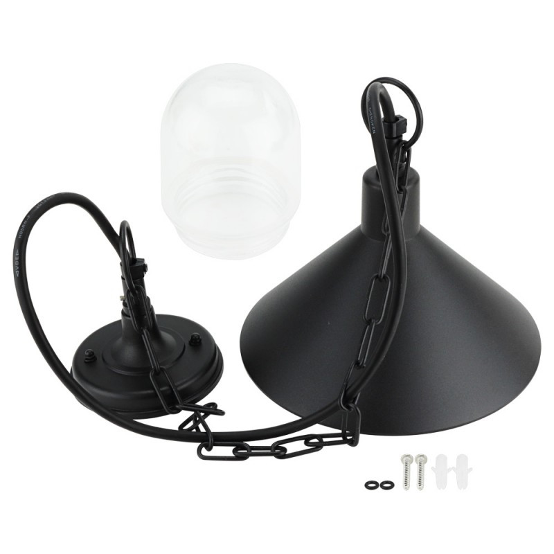 Ipari Stílusú Függőlámpa (E27, Fekete) – IP44, Kültéri/Beltéri Használatra