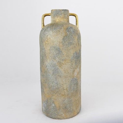 Ez a kerámia váza egy modern és letisztult dísztárgy, mely kiemeli a virágok szépségét, de önmagában is lenyűgöző látvány. A 16x16x40,5 cm-es méretű, harmonikus szürke és arany színben pompázó váza azonnal a figyelem középpontjába kerül. Tökéletes kiegészítő nappalikba, étkezőkbe, hálószobákba, vagy irodákba, egyedi hangulatot teremtve.