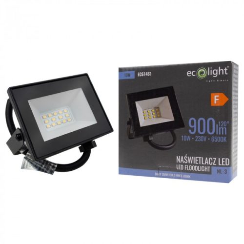 Fekete Ecolight 10W-os kültéri LED reflektor szenzor nélküli, kapcsolós kivitelben, hideg fehér fénnyel