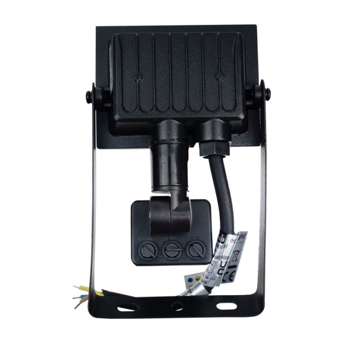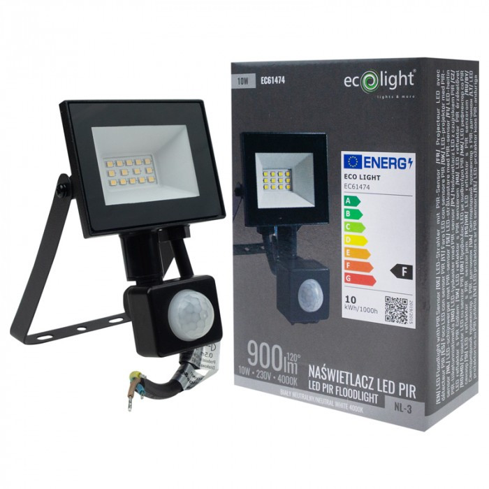 Fekete színű Ecolight 10W-os kültéri mozgásérzékelős LED reflektor, Természetes színhőmérséklet