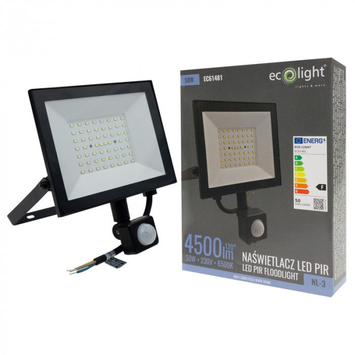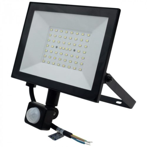 Fekete színű Ecolight 50W-os kültéri mozgásérzékelős LED reflektor, Hideg fehér