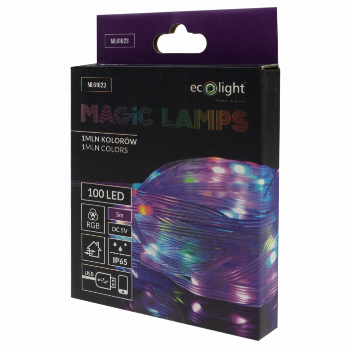 LED Dekorációs Fényfüzér 5 m – 100 RGB LED, 1 000 000 szín, DC5V, Távirányító + Telefonos vezérlés