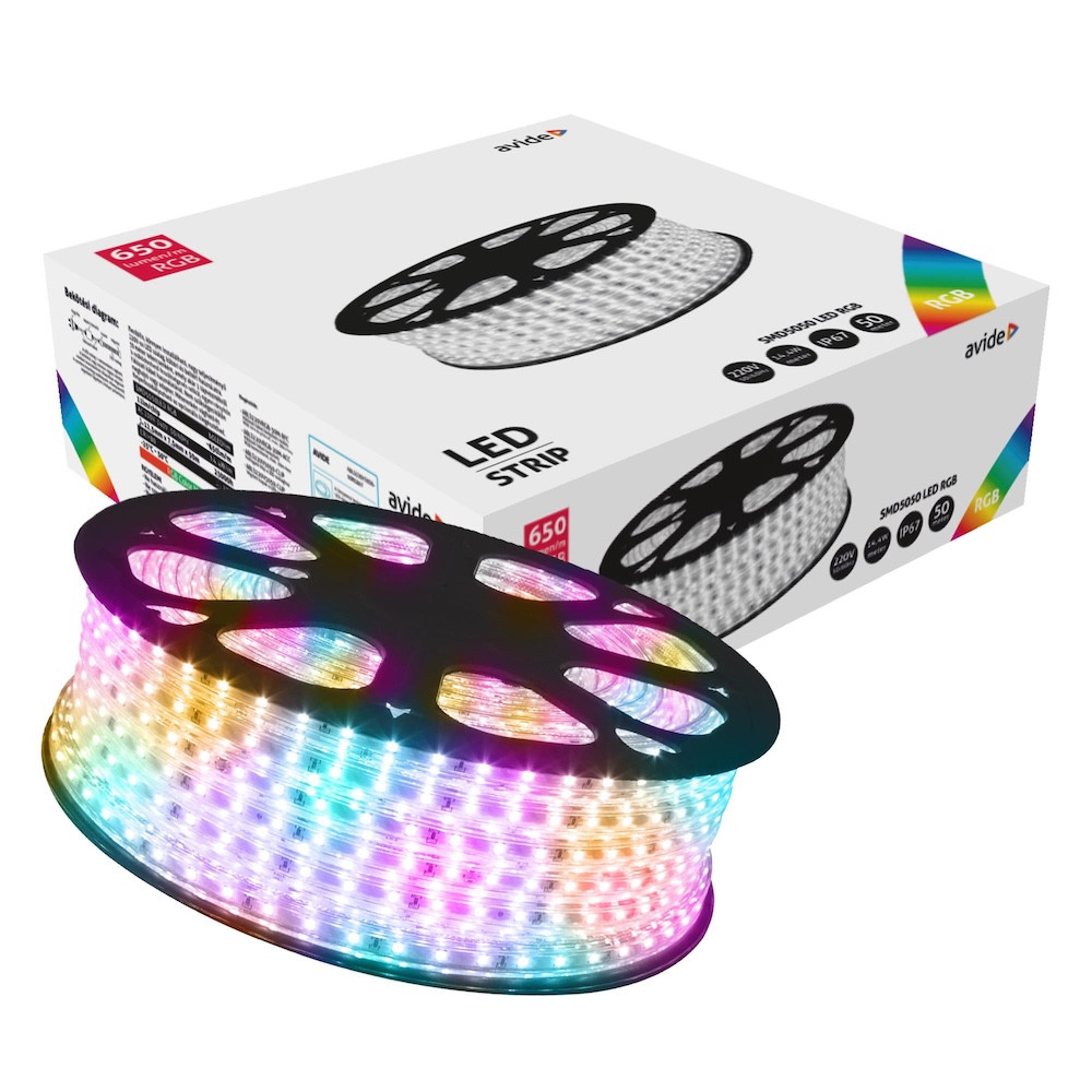 Ez az 50 méteres, 230V-os RGB LED szalag (14,4W) IP67-es védettséggel az extrém időjárási körülményeknek is ellenáll. Ideális kertek, épületek, homlokzatok, medencék vagy nagyméretű beltéri terek hangulatos és színes megvilágítására. Közvetlenül hálózatról üzemeltethető (vezérlővel). A LED szalag csak méterenként a jelölésnél vágható!