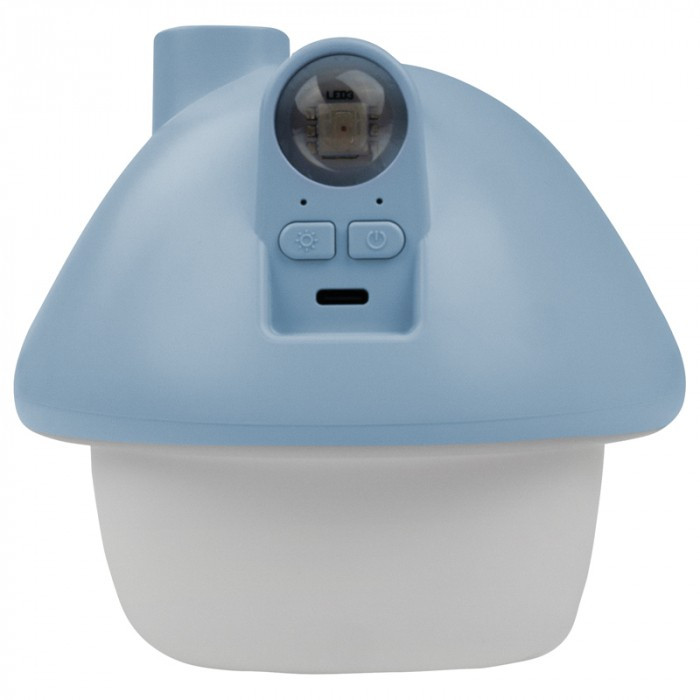 Ez a cuki, kék gomba alakú párásító ultrahangos technológiával biztosít hűvös párát, miközben lágy LED éjszakai fényként is funkcionál. Akkumulátoros így hordozható, csendes és biztonságos. Tökéletes társ a nyugodt alváshoz.