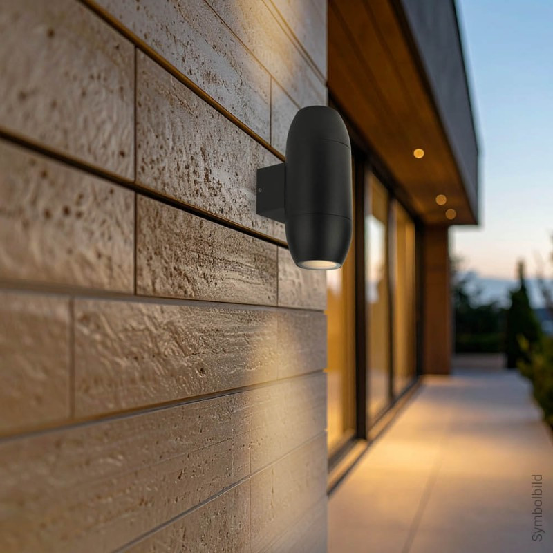 Modern, fekete, ovális ("szivar alakú"), fel-le világító fali lámpa két GU10 foglalattal