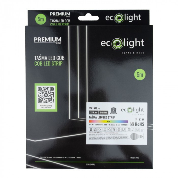 Prémium COB Digitális RGB LED Szalag 24V 720LED 21W/m 1908lm/m SW2811 – A Legerősebb Színes Futófény