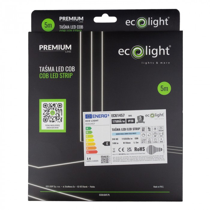 Ez a 24V-os, extra erős prémium COB LED szalag hideg fehér (6000K) fénnyel és elképesztő 1750 lm/m fényerővel garantálja a tökéletes, pontmentes világítást. Magas CRI (Ra>90) értéke és kiváló hatékonysága professzionális alkalmazásokhoz is ideálissá teszi.