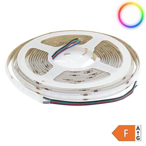 RGB COB LED szalag 24V, 14W/méter, 576 LED/m sűrűséggel, homogén, pontmentes színváltó fénnyel.