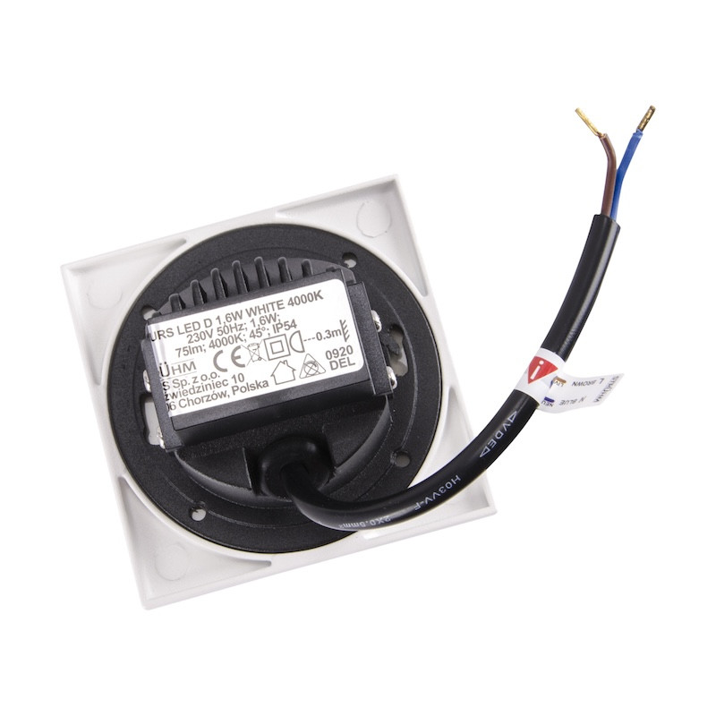 LED lépcsővilágítás, négyzet, süllyesztett, természetes fényű, IP54, 75lm, fehér