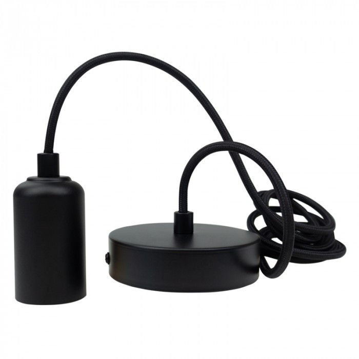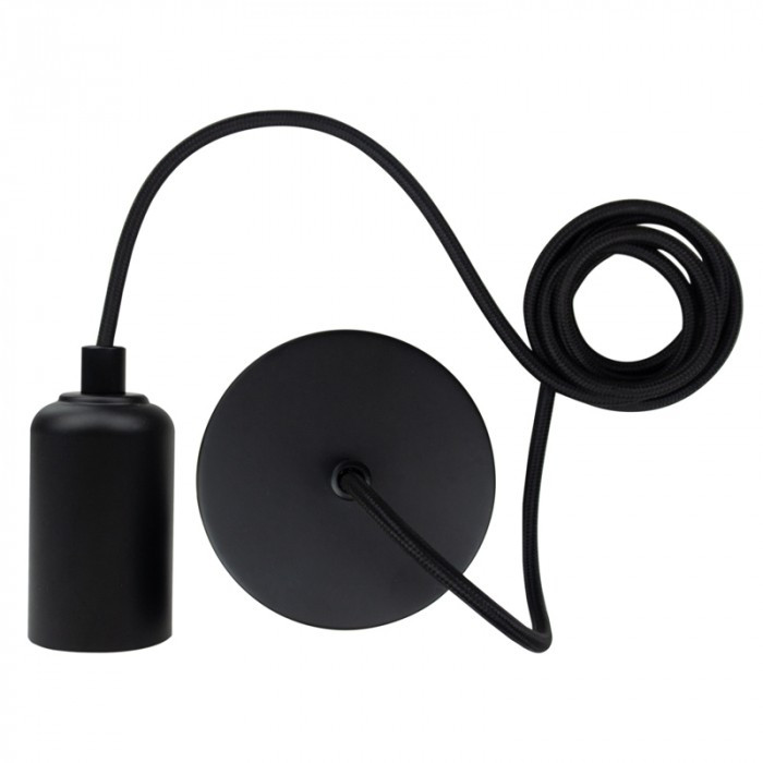 ZERO E27 Függeszték (2m Textilkábel) – Matt Fekete Lámpafoglalat Mennyezeti Rózsával